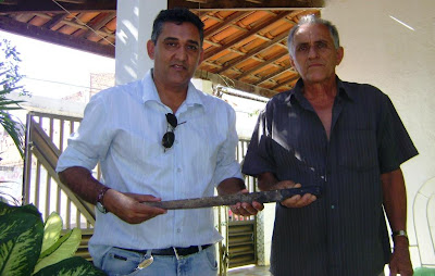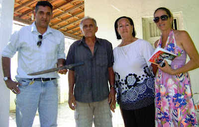 Seu Bento com a esposa e a filha entregando o facão a João de Sousa Lima